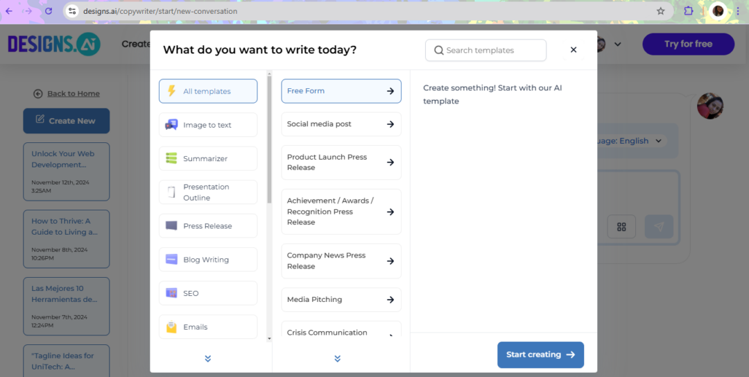 Designs AI is the best AI writing tool when it comes to every content need. It makes content generation efficient, and accessible, especially for users looking for a one-stop solution. It allows users to create high-quality content without any advanced skills.