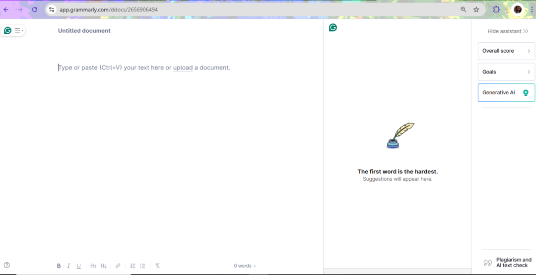 Grammarly helps you review your content for punctuation, grammar, spelling, and clarity. It also has an AI writing assistant that enables you to generate ideas.