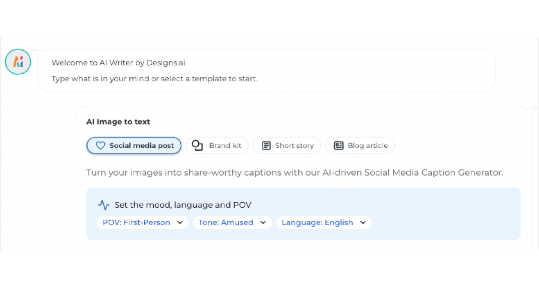 1. Use Designs.ai Image to Text: Select high-quality images and use the platform to convert them into text. (link to Image to text)